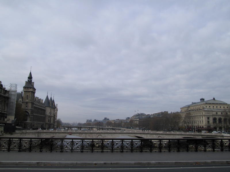 Photo de Paris: la Seine, le Pont au Change, le Quai de l'Horloge à gauche, la voie Georges Pompidou à droite, le Pont Neuf au loin, depuis le pont de Notre-Dame à Paris