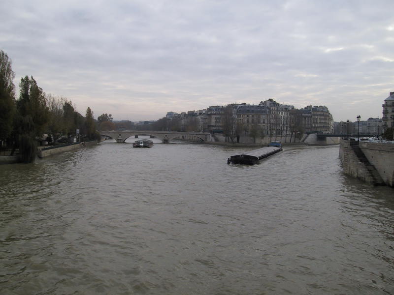 avec passage d'une péniche et d'un bateau mouche de chaque côté de l'Ile Saint-Louis.