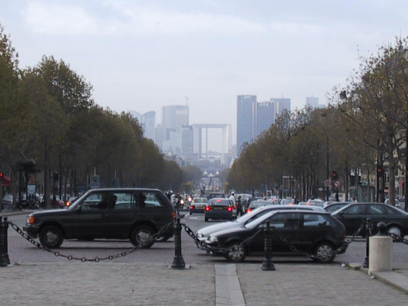 Avenue de la Grande Armée à Paris avec vue sue la Grande Arche au fond., depuis l'Arc de Triomphe.