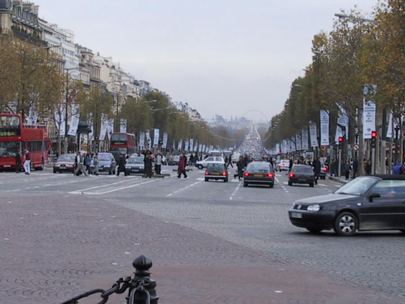 Avenue des Champs Elysées, depuis l'Arc de Triomphe à Paris.