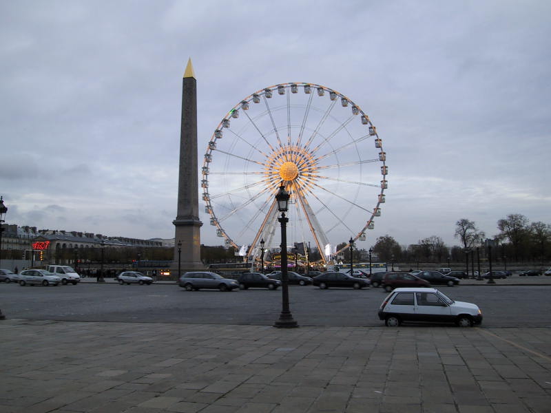 L'obélisque et la grande roue temporaire (an 2000) sur la place de la Concorde à Paris